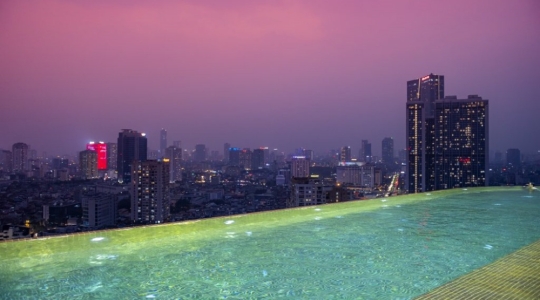 - Hồ bơi vô cực: Tầng 27, thiết kế dát vàng, ánh sáng lung linh, view hồ Giảng Võ và thành phố, lý tưởng chụp ảnh.