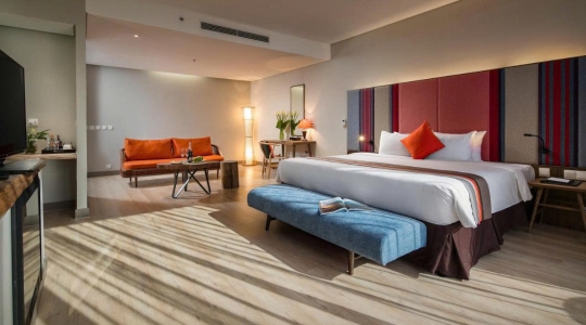 - Suite (45 m²): Giường đôi cực lớn, khu vực tiếp khách riêng, phù hợp cho gia đình nhỏ.